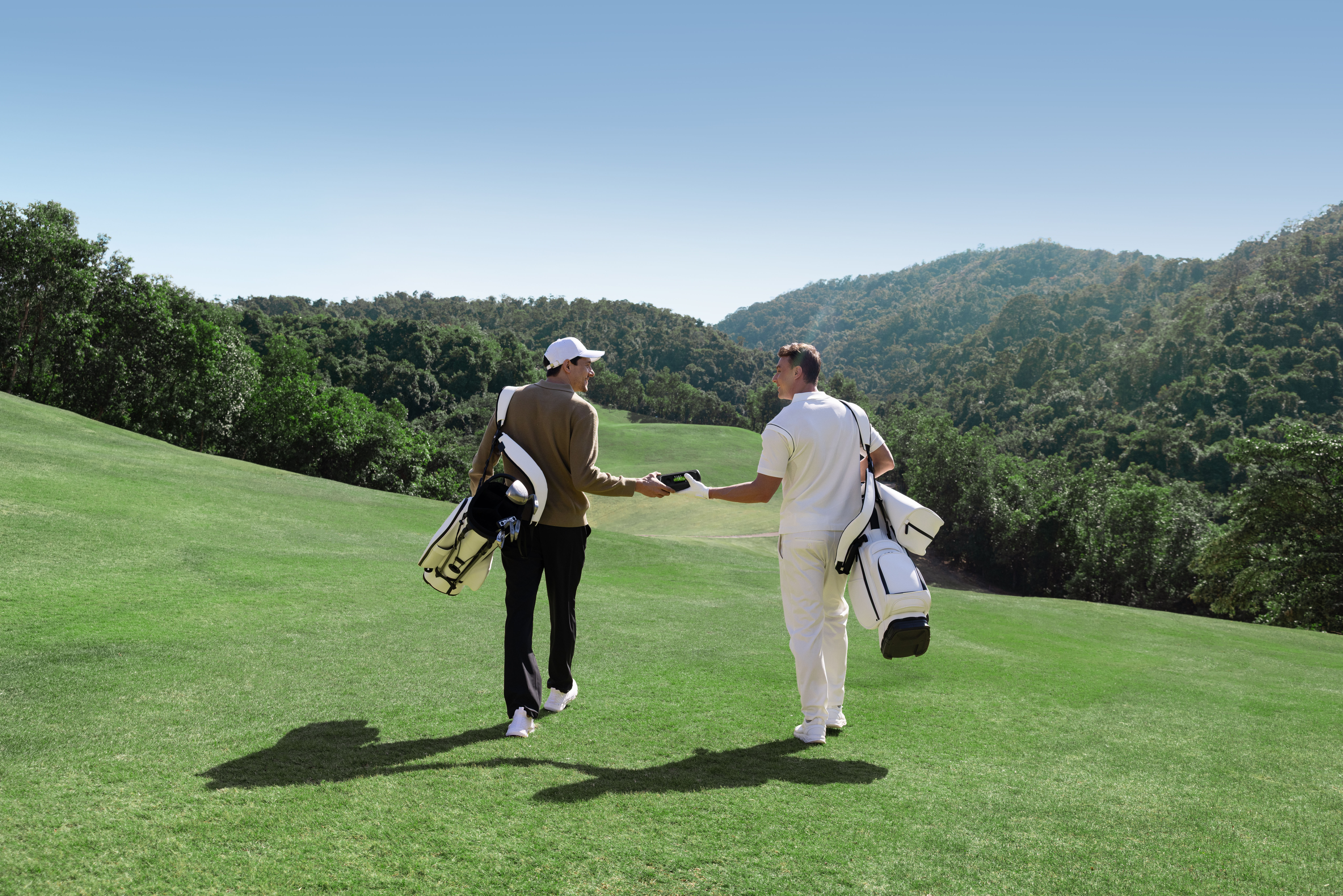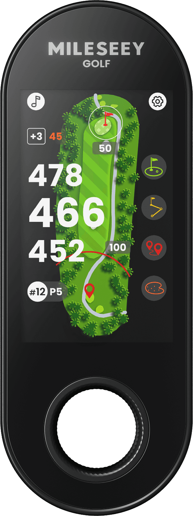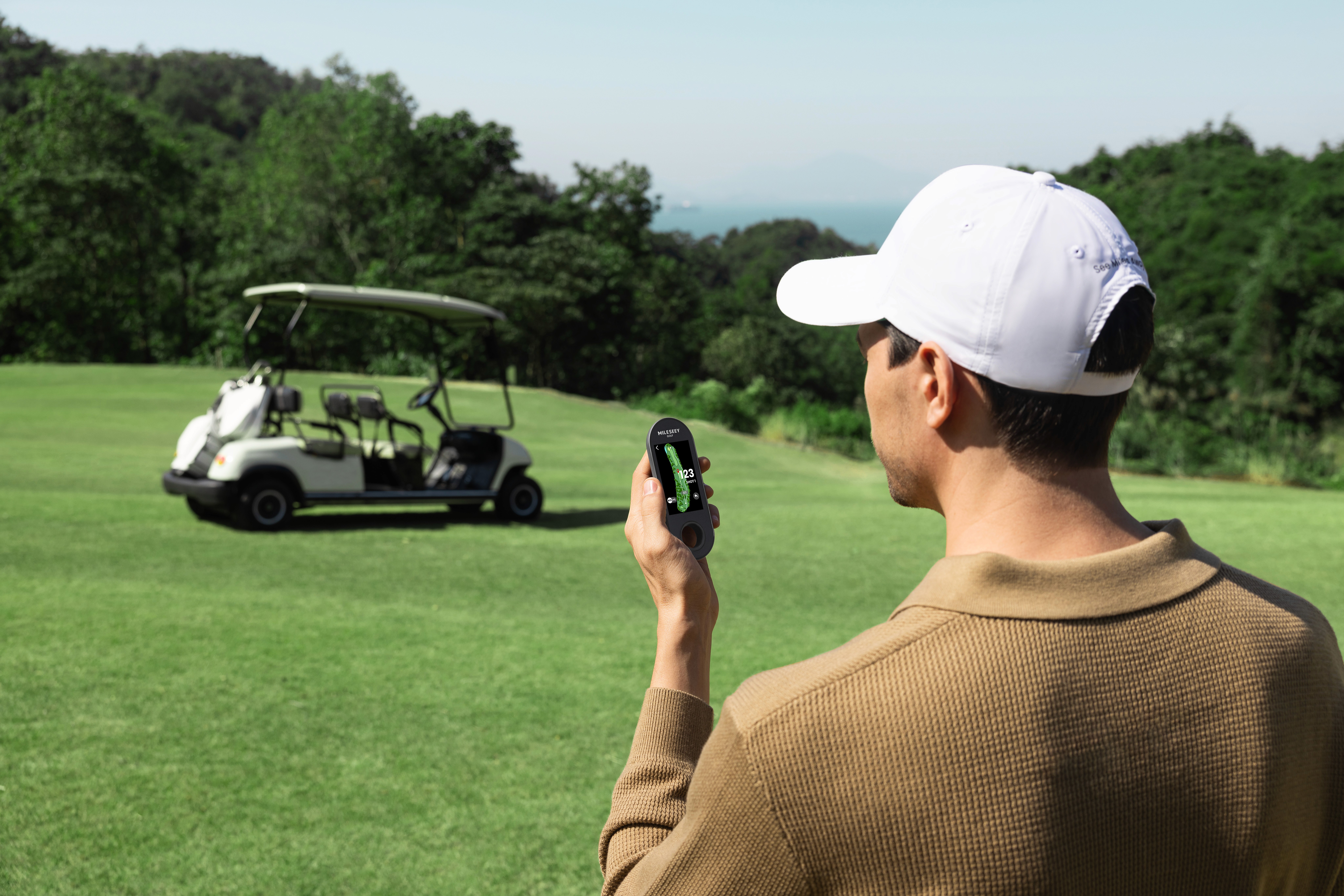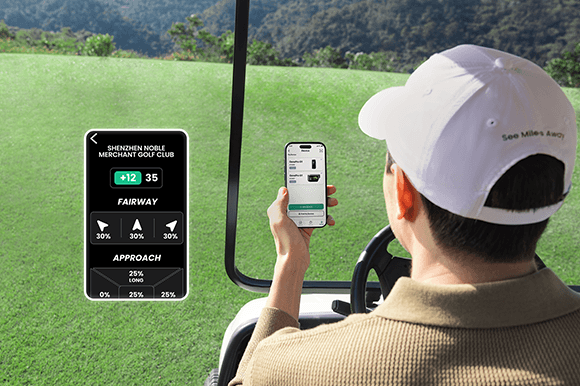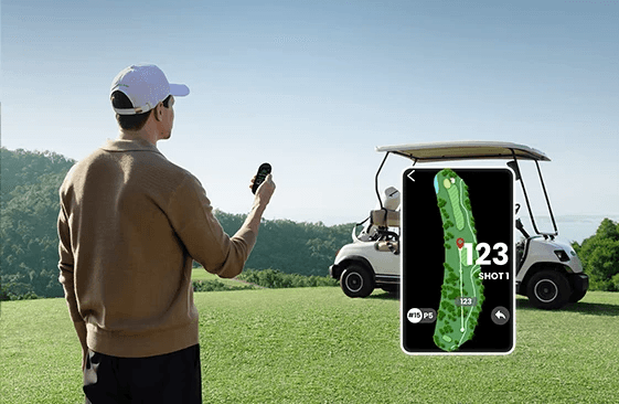 着脱式GPS距離計と連携することで、スマートフォンアプリを使用することなく、距離や障害物の位置、コースレイアウト情報をリアルタイムで取得可能。プレーへの集中を保ちながら、一打一打のショットプランを的確にサポートします。