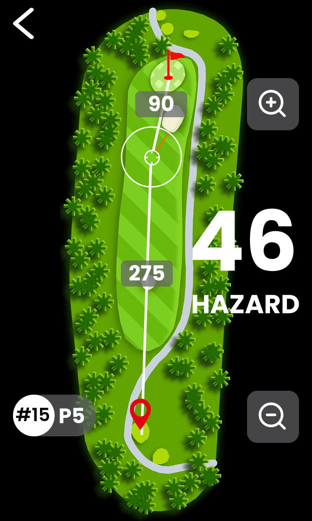 コース内の各種ハザードを自動で認識。ショット前に障害物の方向や位置を明確に表示。