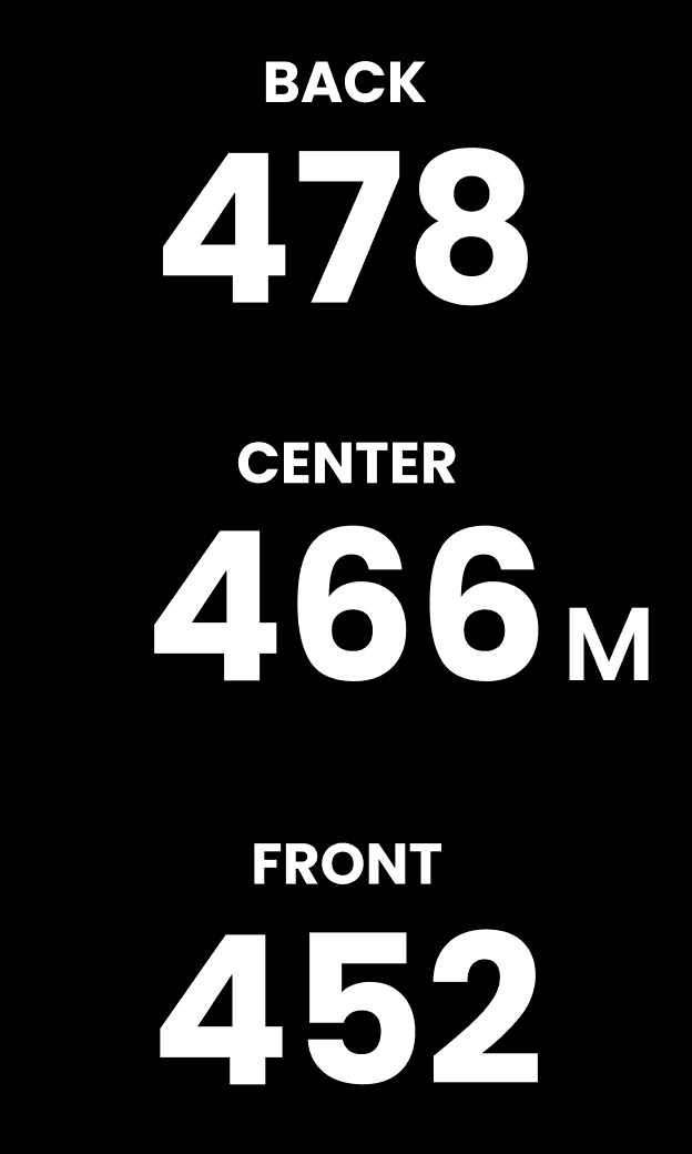 グリーン手前・中央・奥までの距離を表示し、戦略的なショット判断をサポート。
