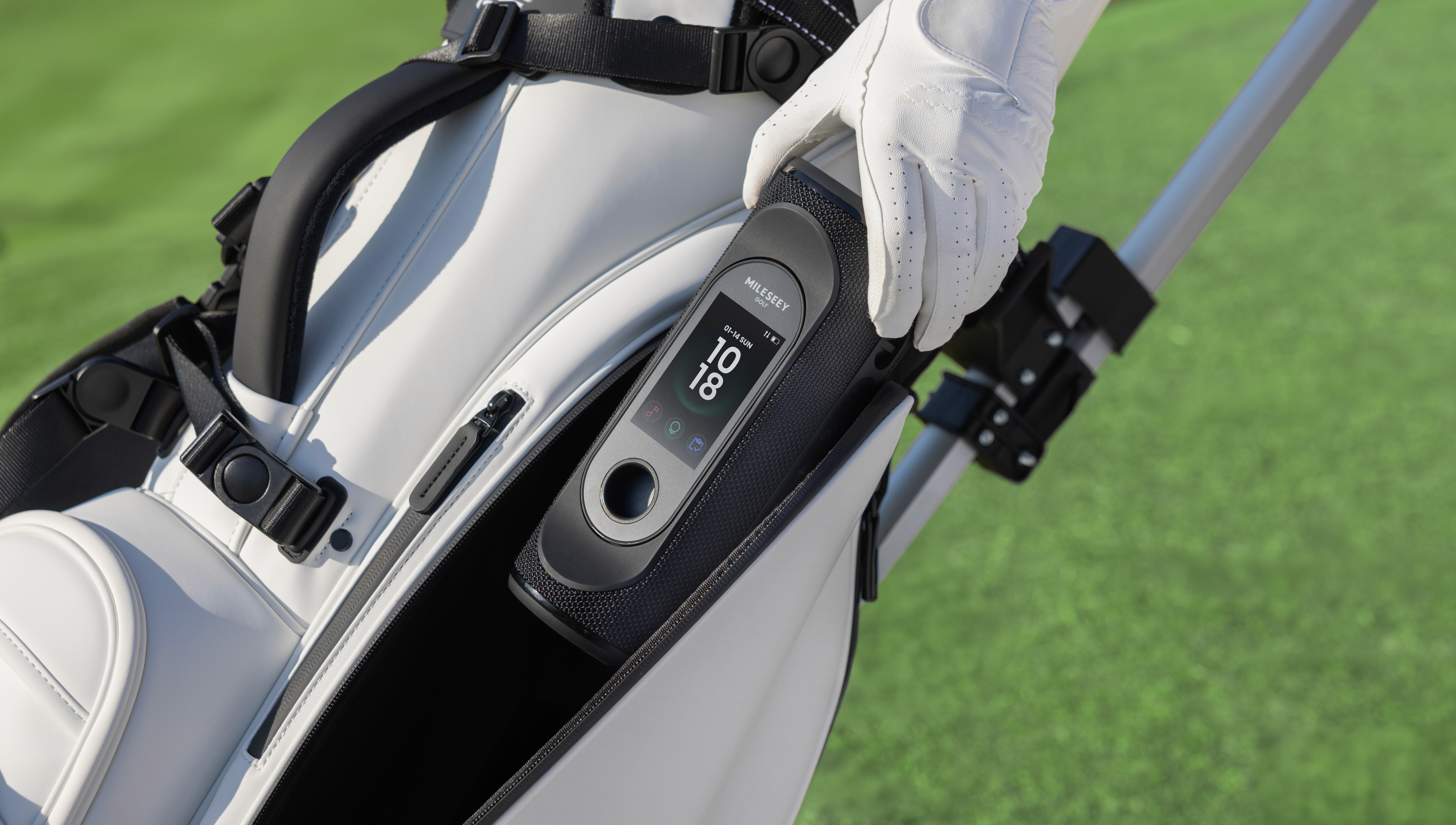 パワフルなスピーカーと着脱式GPS距離計を一体化した設計。