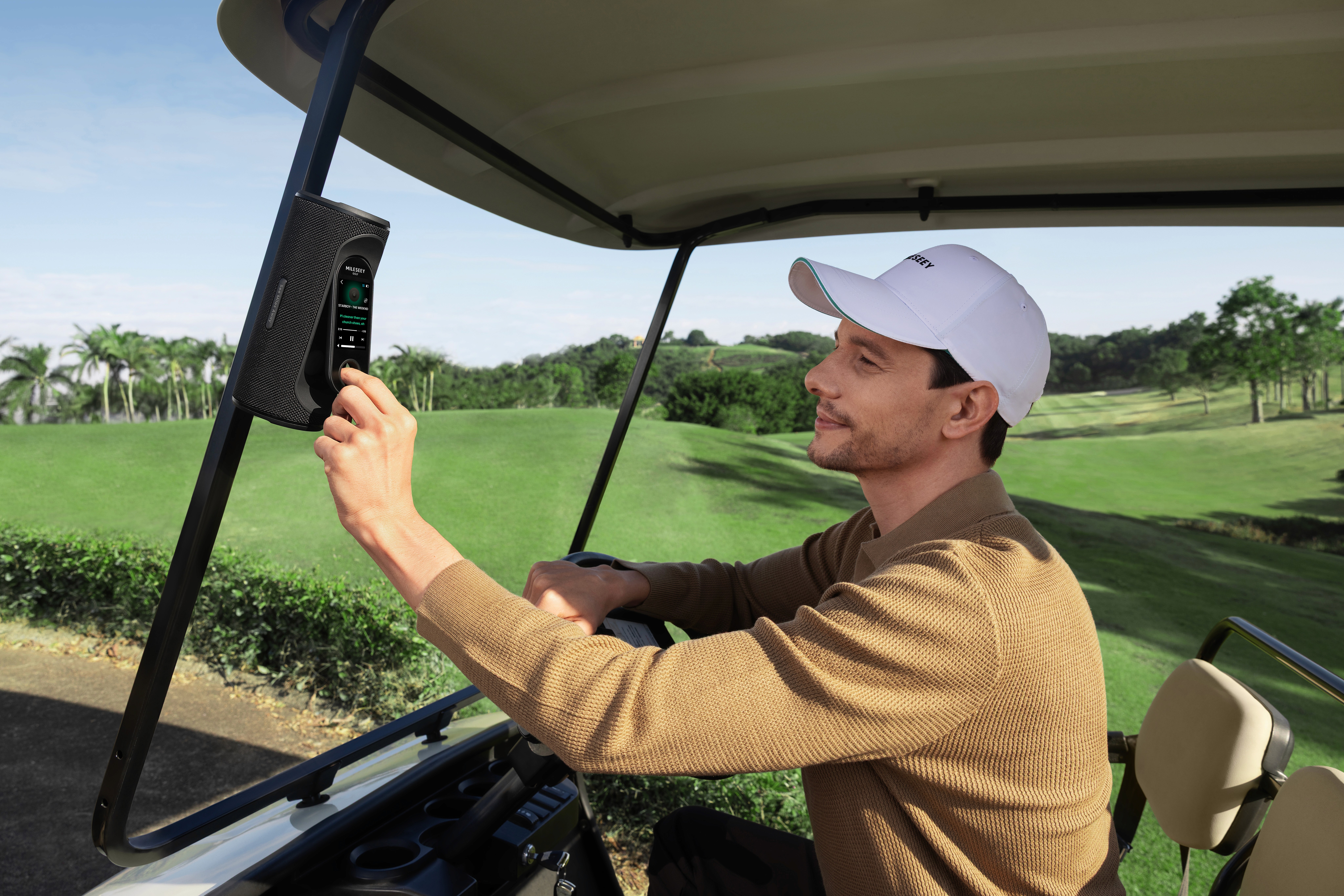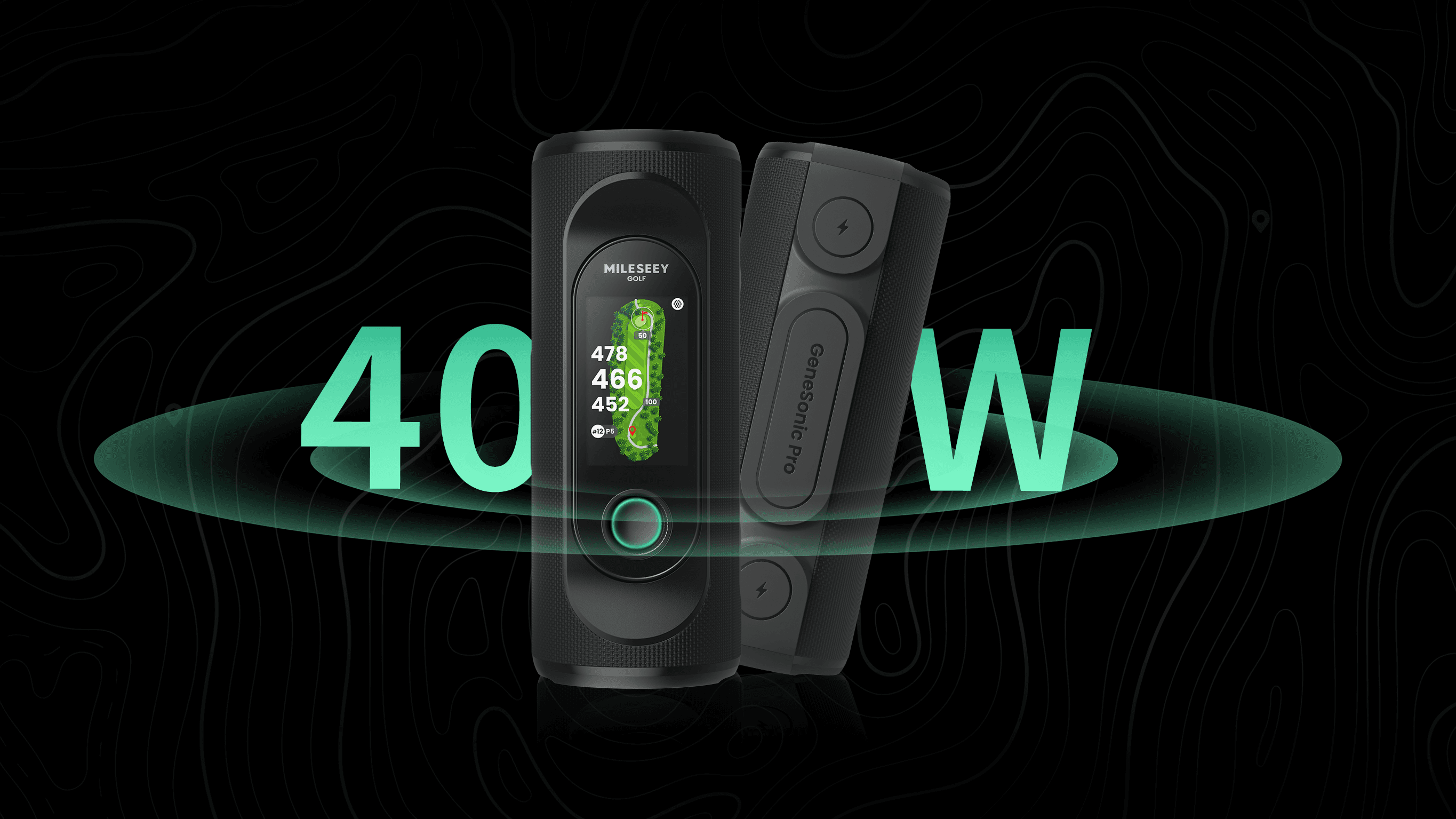 40Wの高出力スピーカーを搭載。屋外のゴルフコースでも、音声案内と音楽をクリアに再生できます。